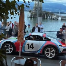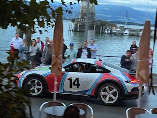 Die 4. AvD-Röhrl-Klassik eine exklusive Porsche-Rallye mit rund 170 historischen Fahrzeugen, machte von 19:40 bis 21:30 Uhr an der Hafenpromenade Station. Walter Röhrl, zweifacher Rallye-Weltmeister und Namensgeber der Veranstaltung, ist zugleich Schirmherr und aktiver Teilnehmer. Bei der Ankunft in Lindau wurden Röhrl und die Fahrzeuge von einem Moderator präsentiert. Leider hatten wie mal wieder kein Wetter Glück